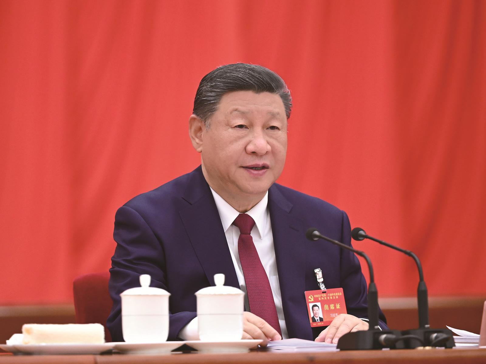 中國共產黨第二十屆中央委員會第四次全體會議,於2025年10月20日至23日在北京舉行。中央委員會總書記習近平作重要講話。 新華社記者 謝環馳 攝